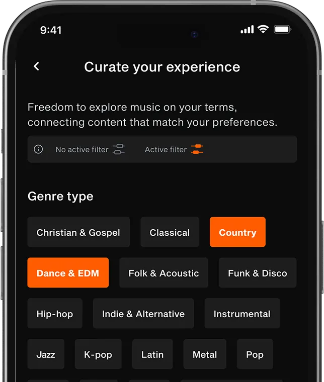The ability to customize your feed with filters, making music discovery personal and effortless.
